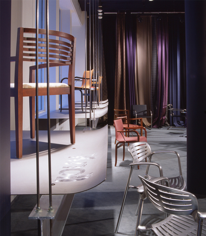 The project was expanded and redesigned in 1992 as part of the KnollGroup. A new entrance and integrated window display elements were added to provide product and showroom areas open to the public. The detailing of these new elements referenced, at a smaller scale, the original suspension display details employed for the main stairway to the expanded lower level.