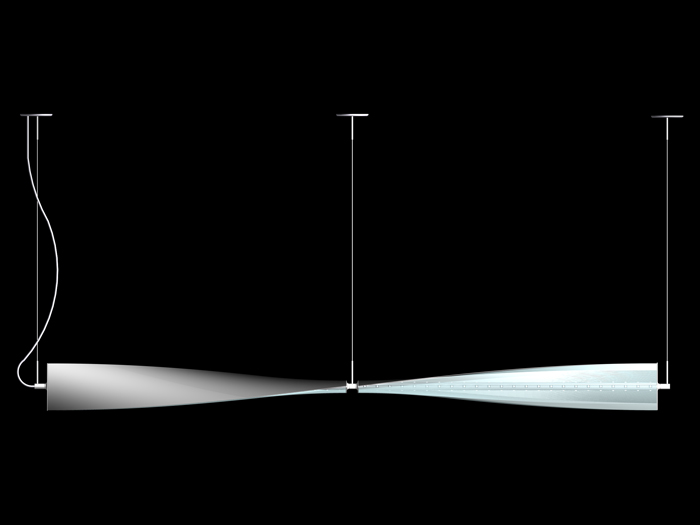 © is a pendant architectural system for wall and surface illumination. The extruded aluminum luminaire body integrates the LED source as a continuous entity, with options for various wattage densities along the path. These modular sections can be ganged and set at various aiming angles for multiple fixture types and applications. Various optic diffusers would be offered to support application types.